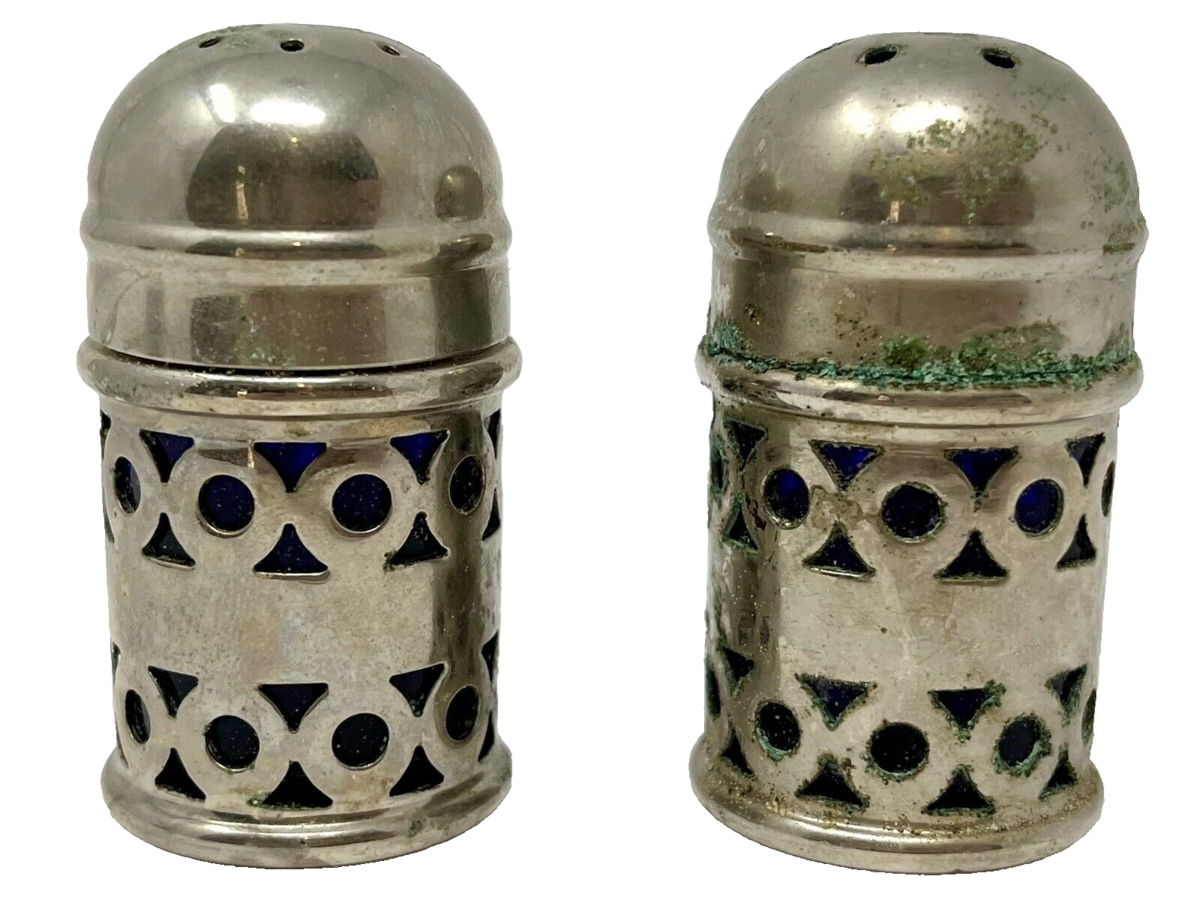 Vintage Apex EPNC England Cobalt Salt and Pepper Shakers 2 Sets