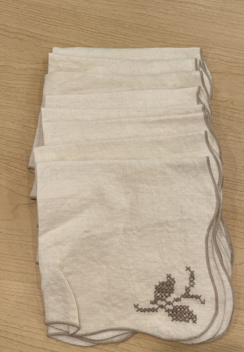 Vintage Ivory Crosstitched Cotton Napkins 14" x 14" Set of 8