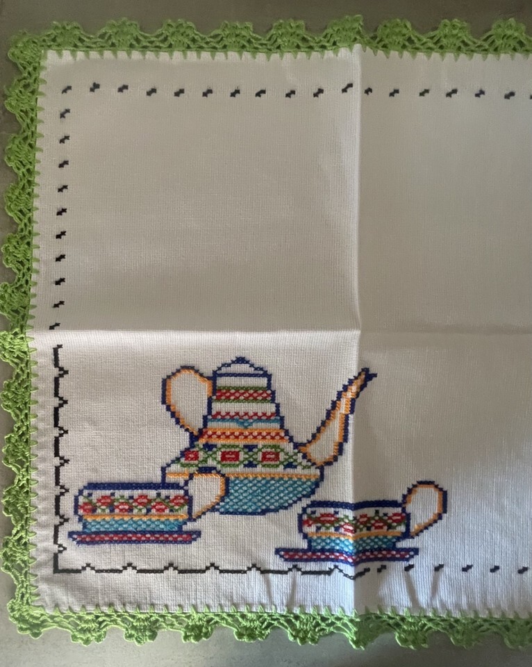 Handmade Embroidered Tablecloth Servilleta Bordada a Mano Cafetera 24x24