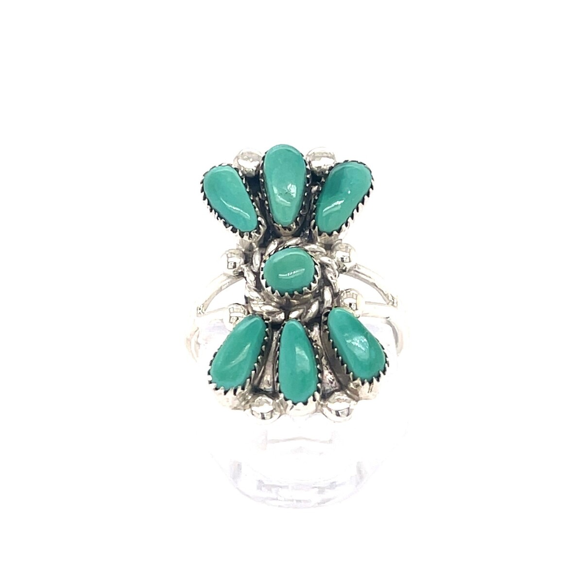 Bill and Lou Zuni Turquoise Cluster Ring Size 6.75