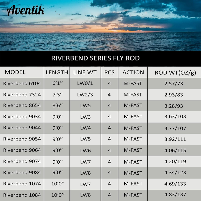 Includes a 9?0? 5WT Riverbend fly rod, pre-spooled SADC aluminum fly reel, 12 hand-tied flies, waterproof fly box, stainless steel nipper, and wader zinger ? all neatly packed in a durable travel rod case.