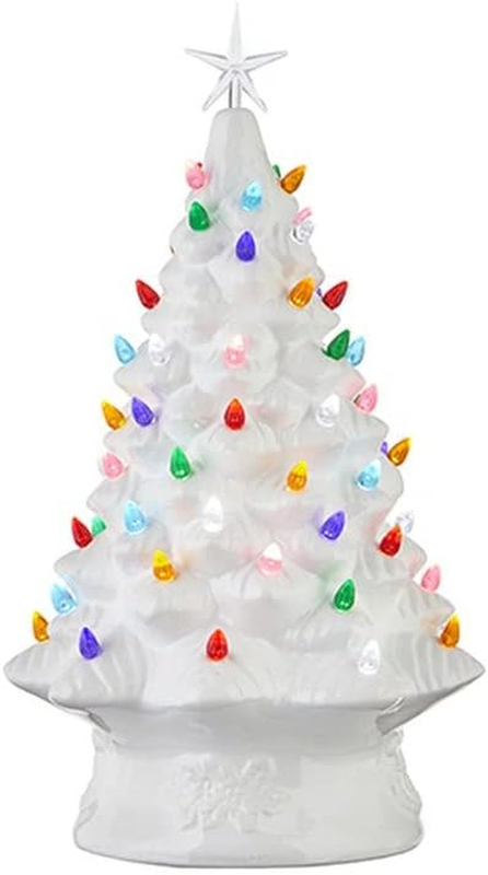 Vintage White Ceramic Christmas Tree 17" Lighted Porcelain Tabletop Holiday Déco