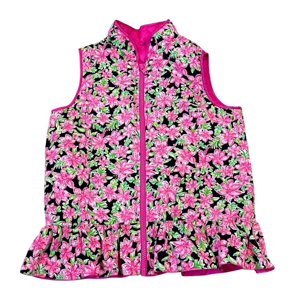 Reversible Lilly Pulitzer Girls Floral Quilted Vest Large 8-10 Pink & Multicolor