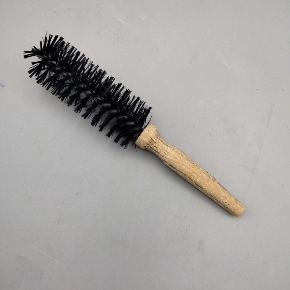 Vintage Goody Full Round Brush, Faux Wood Handle, Black Bristles, 1" Barrel
