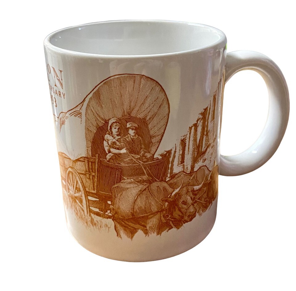 Oregon Trail Coffee Mug 150 Anniversary Covered Wagon Horse Settlers 1843 - 1993