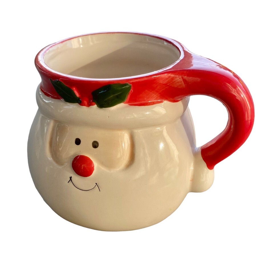 Rounded Santa Mug Holly Berries Red Nose Smiling Christmas Hot Chocolate Cute