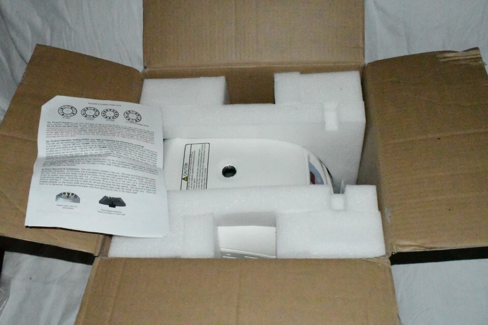 I OPENED THE BOX TO CHECK THE MOTOR AND TO PLACE MY PICTURED SECURITY WARRANTY STICKERS ON IT , ITS IN EXCELLENT LIKE NEW SHAPE