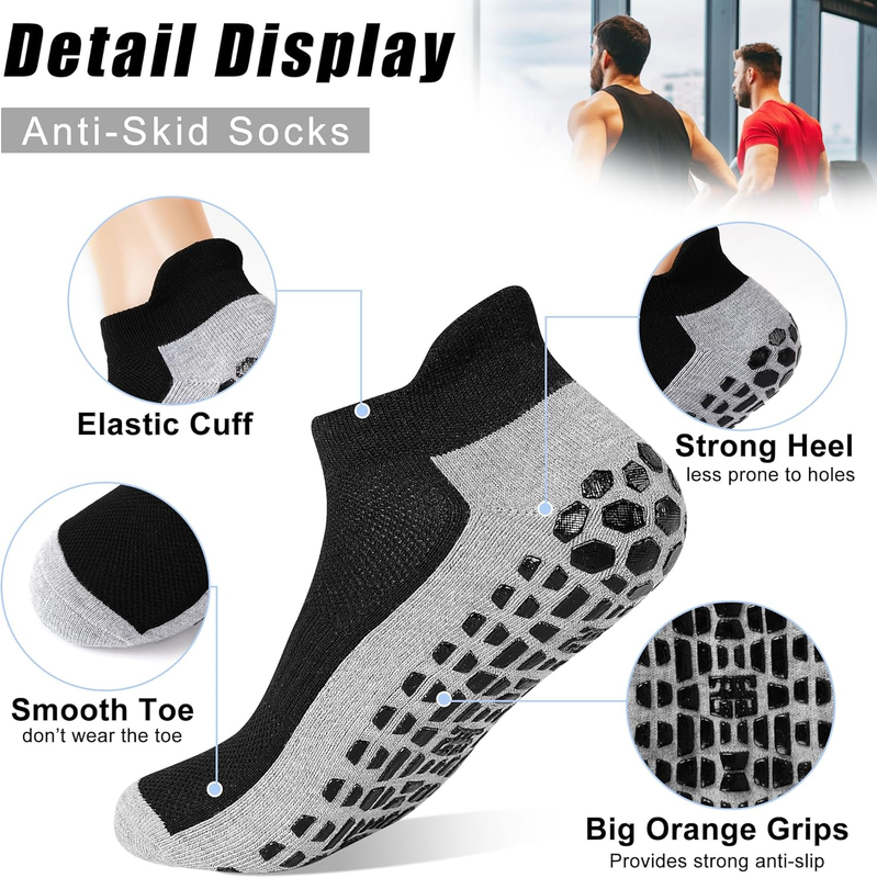 Men Non Slip Anti-Skid Socks 3 Pairs Tile Wood Floors Sticky Grips Ankle Socks for Yoga Pilates Workout Hospital