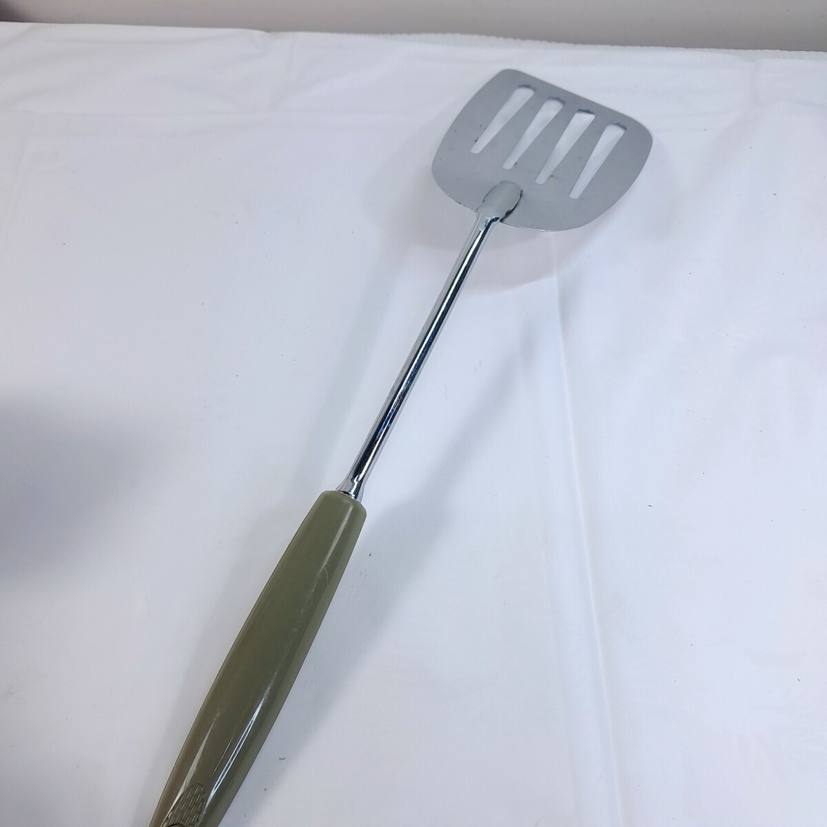 Vintage EKCO USA Chromium Plated Slotted Spatula turner Avocado Green Handle