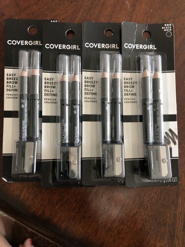 4x CoverGirl Easy Breezy Brow Fill Define 500 Black - 8 Total Pencils.
