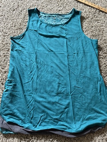 Tangerine Teal Blue Tank Top Floral Back Workout Athletic Scoop Neck Size XL