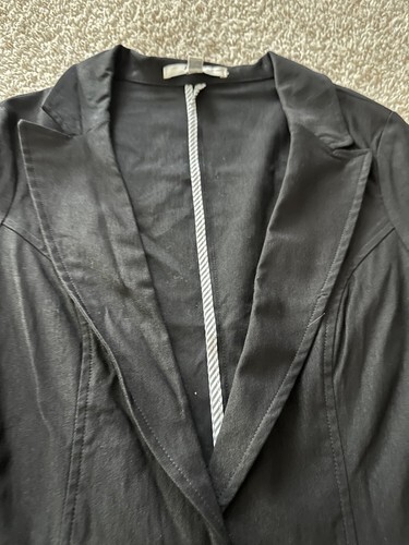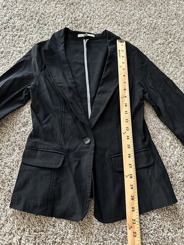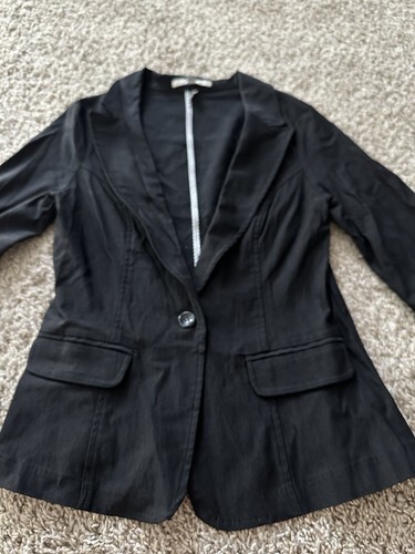 Papaya Basic Solid Black Roll Sleeve Single Button Blazer Jacket Size Small