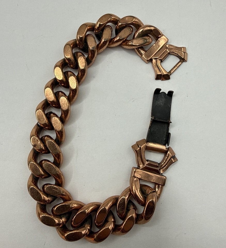Vintage Renoir Copper Bracelet Cuban Link HEAVY 70g Signed 8” Men’s