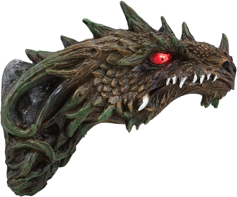 Ebros Fantasy World Tree Dragon Head Figurine with LED Eyes Wall Plaque 9.75"H