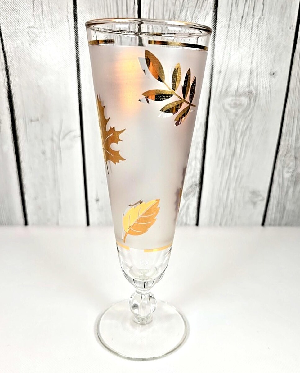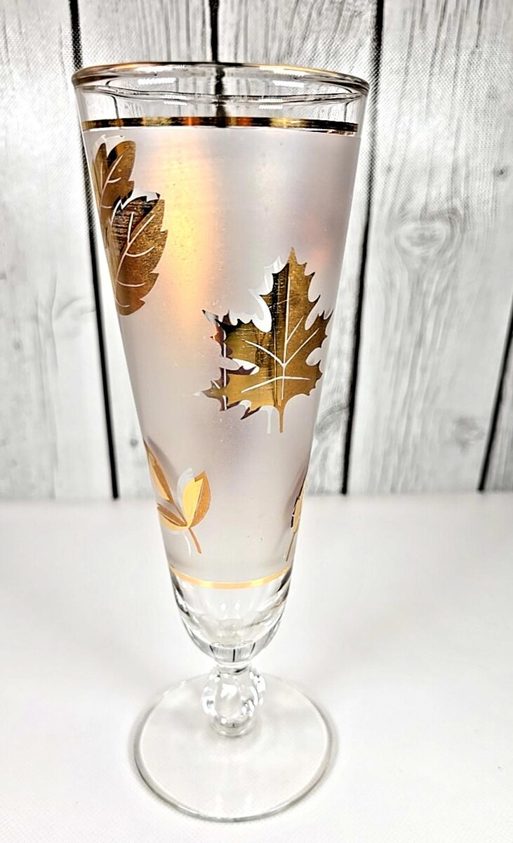 Vintage Libbey Golden Leaf Mid-Century Pilsner Glass 12 oz Barware