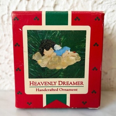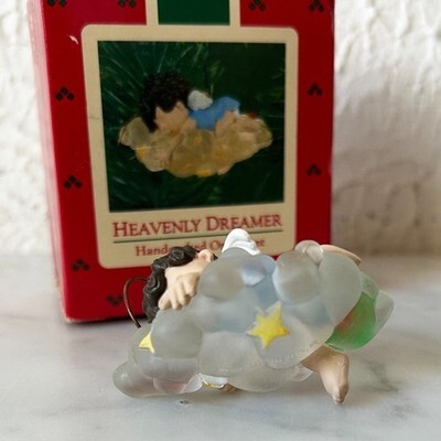 Hallmark Christmas ornament Heavenly Dreamer 1986. Baby angel sleeping on a cloud. In original box which shows light wear.