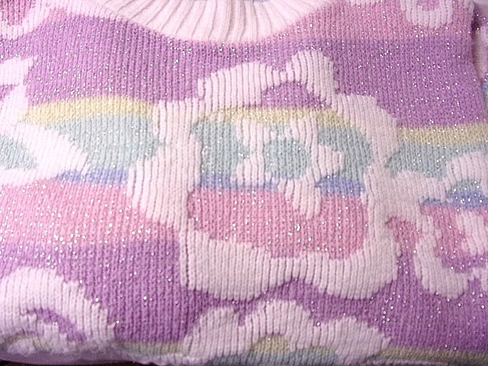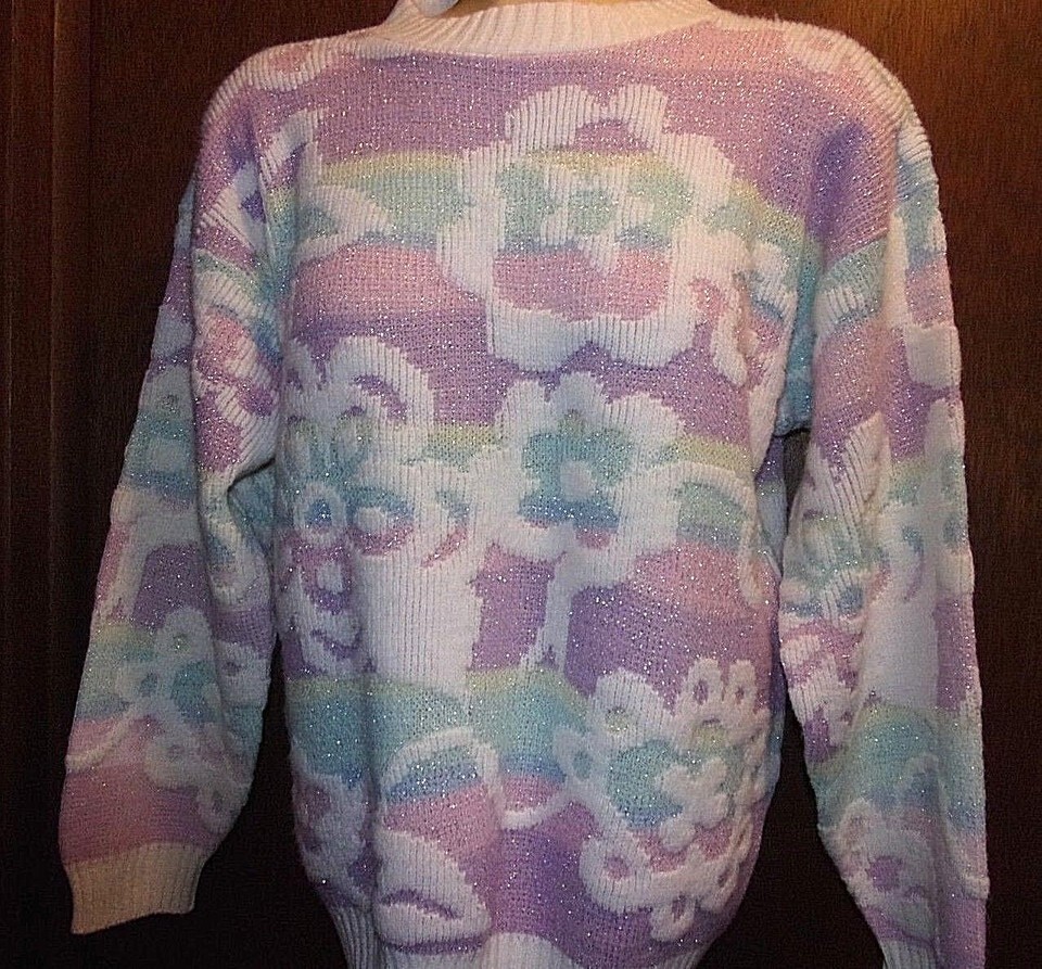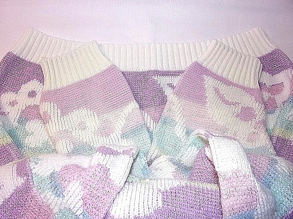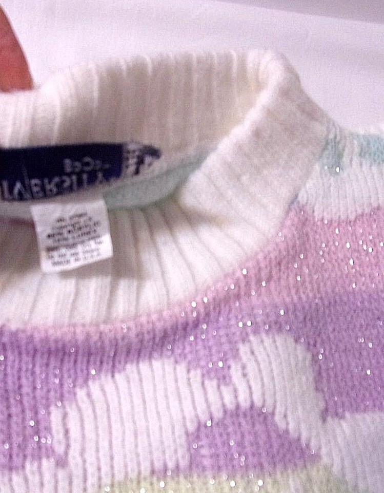 Vtg Fairy Kei SPARKLE Sweater One Size Petite Flower Stripe PASTEL Colors Kawaii