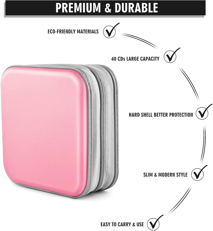 CD Case, Dvds Wallet Holder, CD/DVD Case Wallet 40 Discs Heavy Duty Bag Binder Storage Booklet Album (Light Pink)