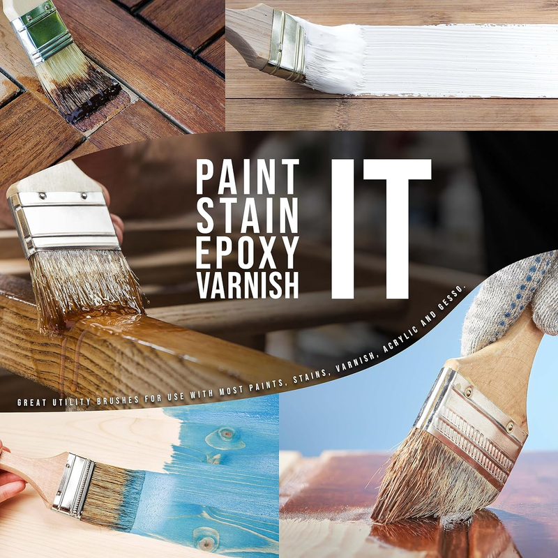 Great utility brushes for use with most paints, Stains, varnish, acrylic and gesso.