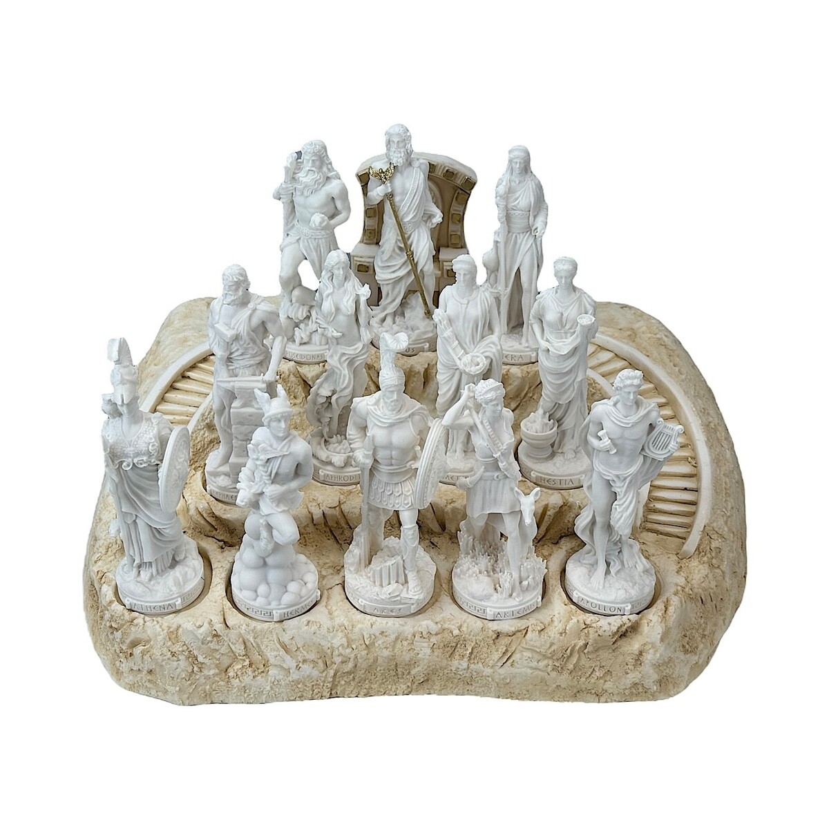 Set 12 Twelve Greek Roman Olympian Gods Pantheon Statue Sculpture Small 5.1 in with the Base included