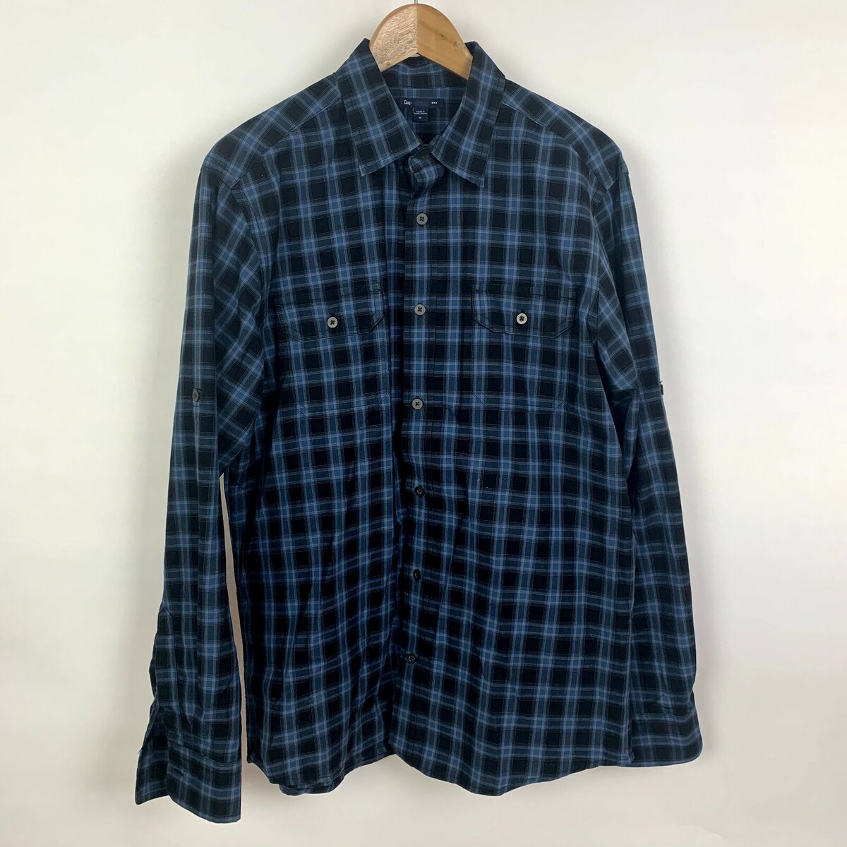 Gap Plaid Button Front Shirt Long Sleeve Collared with Flap Pocket Size M Mens