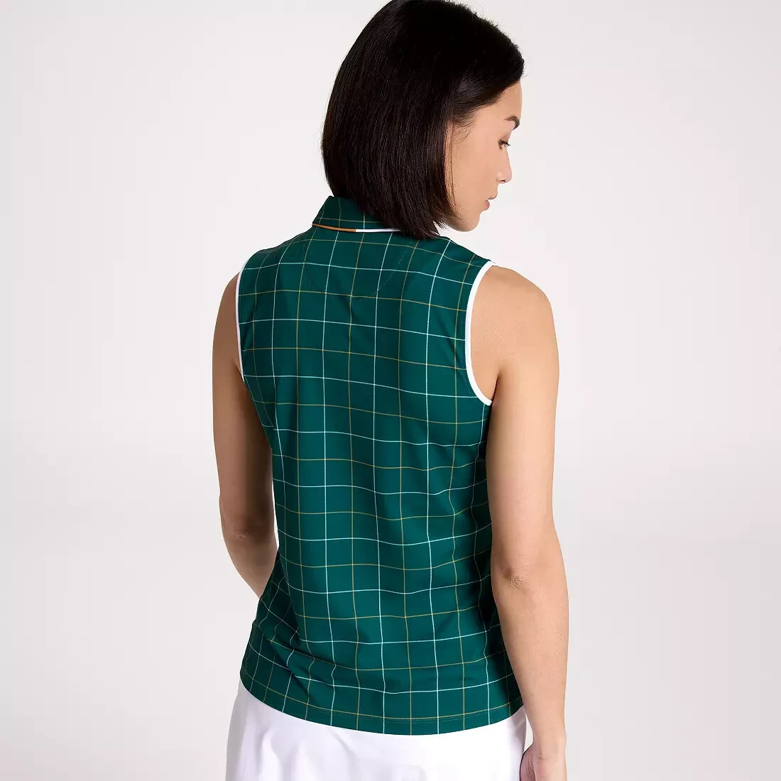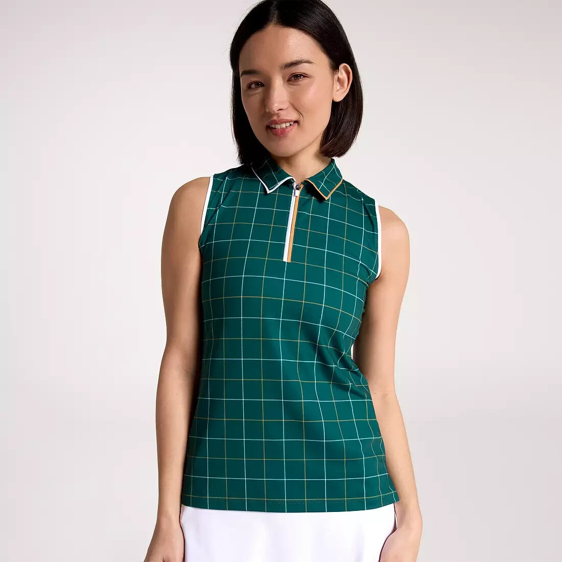 Walter Hagen Women's P 11 Sleeveless Golf Polo Forest Green Plaid Size Medium