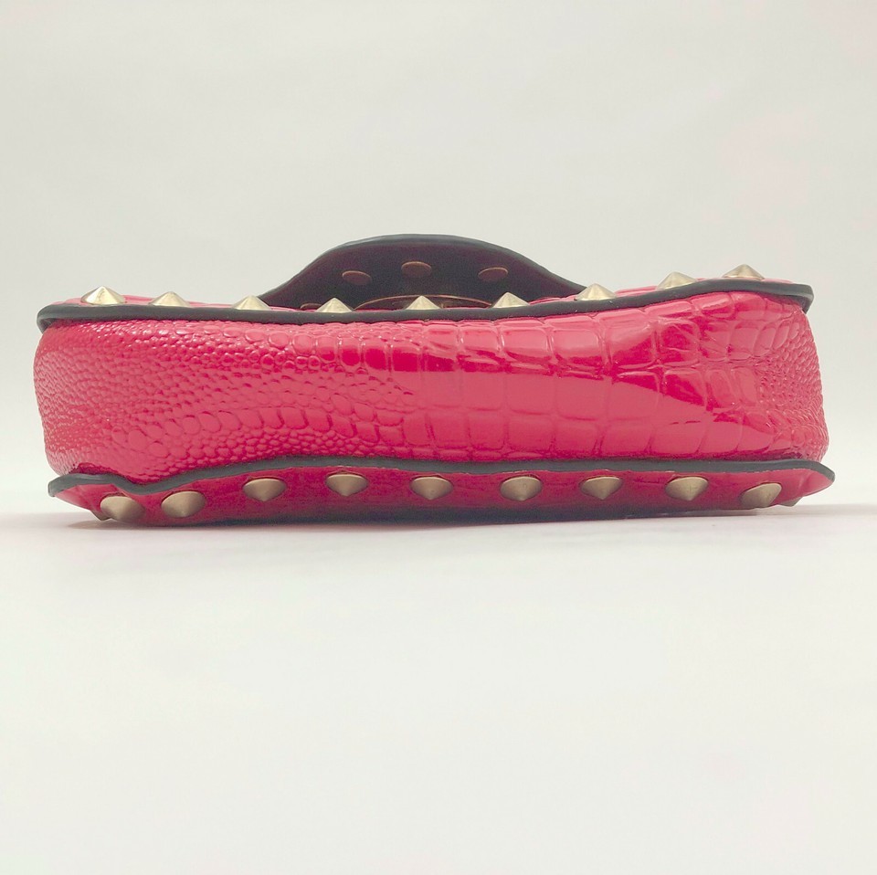 Red Embossed Faux Leather Small Shoulder Cross body Bag Rhinestone & Studs