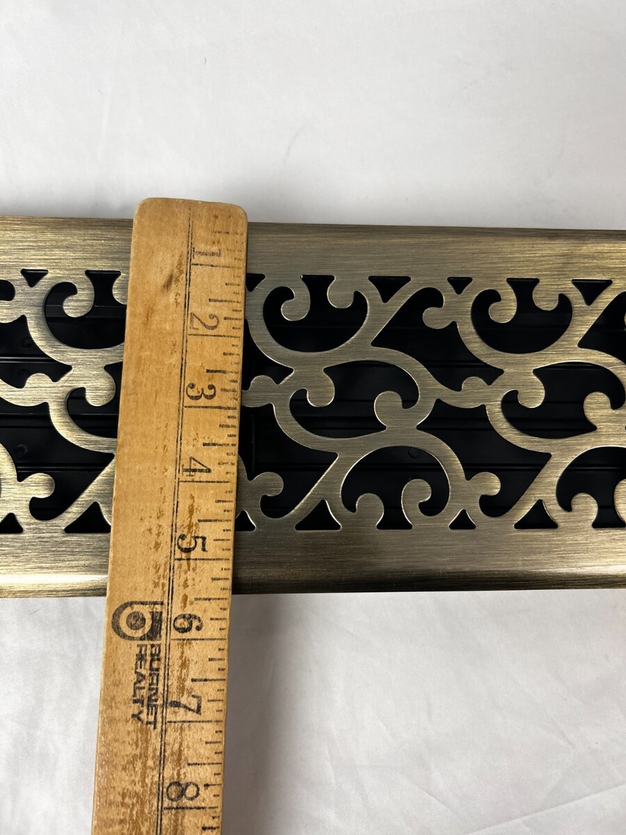 4" x 13.5" Antique Brass Scroll Floor Register Vent Cover Metal Grille