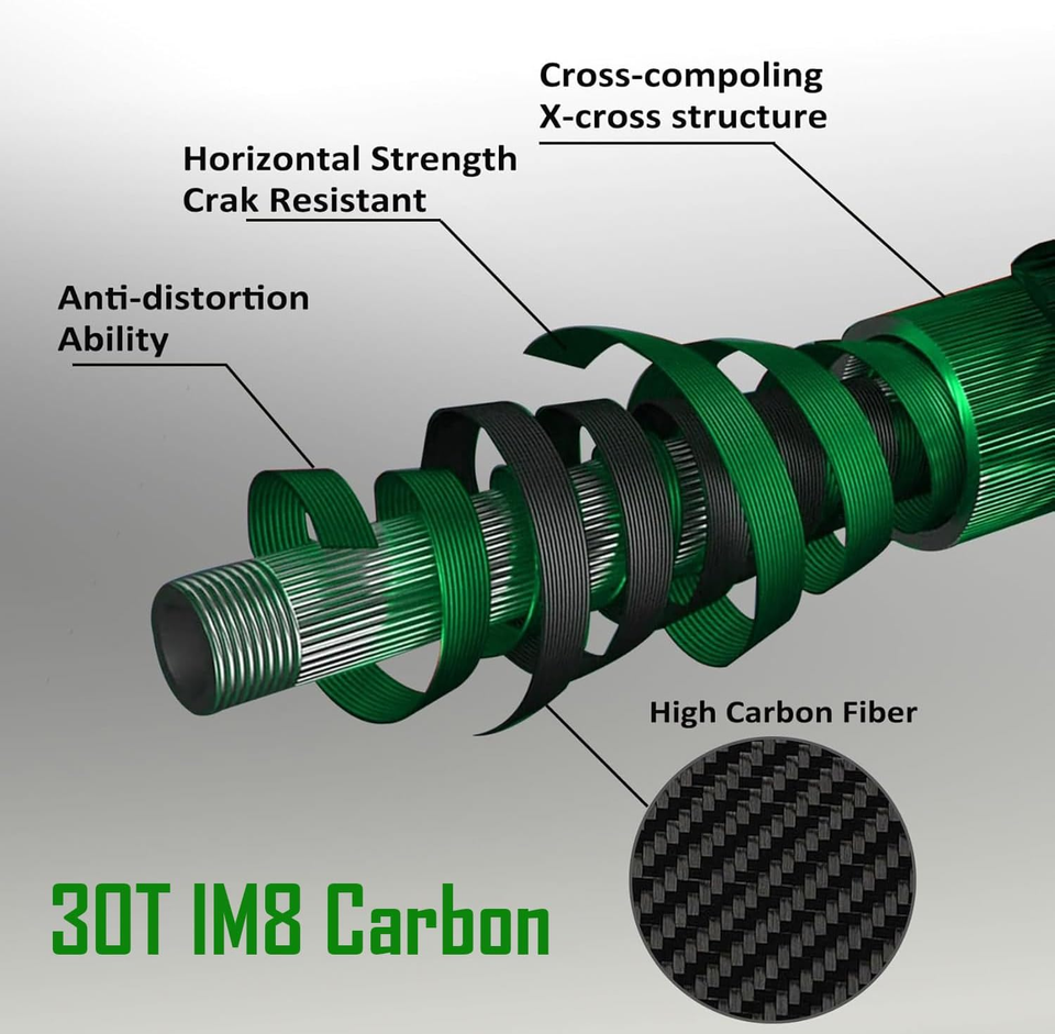 Crafted from IM8 24T + 30T carbon fiber, this 4-piece rod delivers medium-fast action for accurate casting and smooth control. Features an aluminum reel seat, chrome-plated guides, and an AAA-grade Portuguese cork handle for comfort and balance.