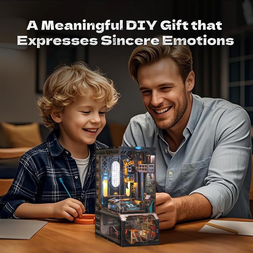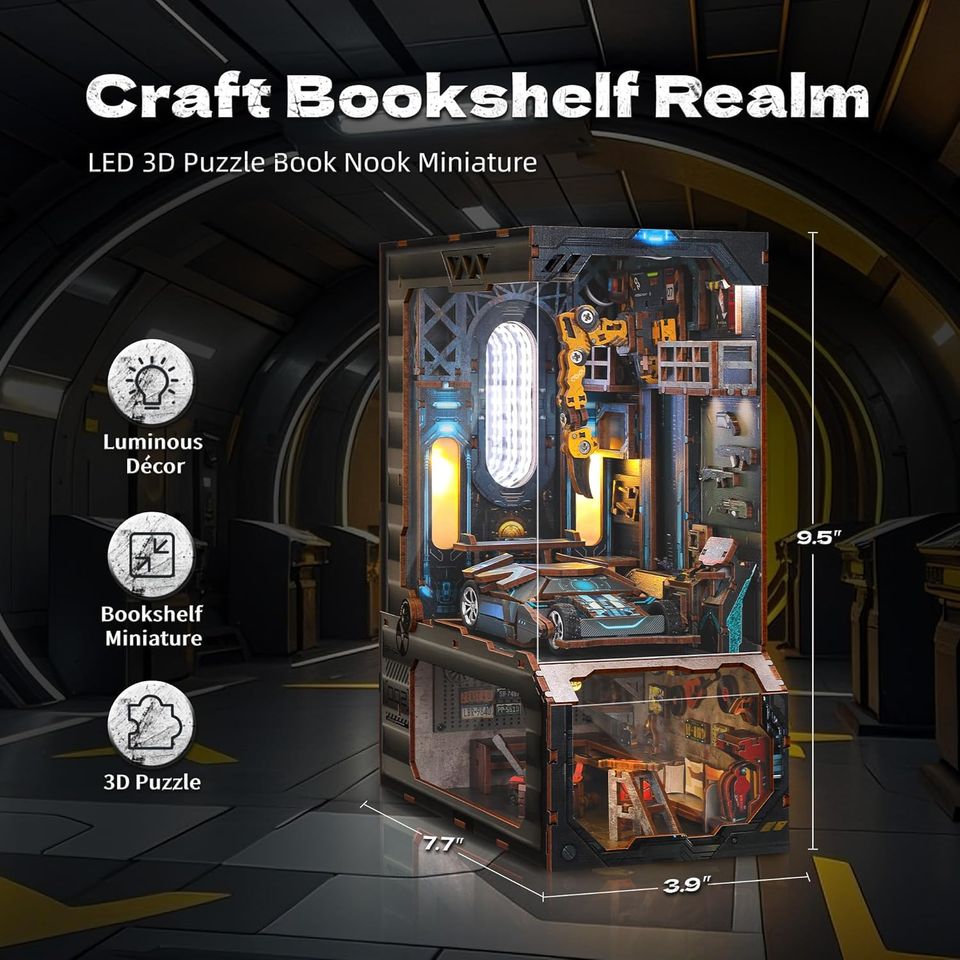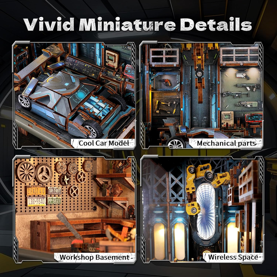 3D Wooden Puzzle Book Nook DIY Miniature Garage Kit with LED – Auto Workshop