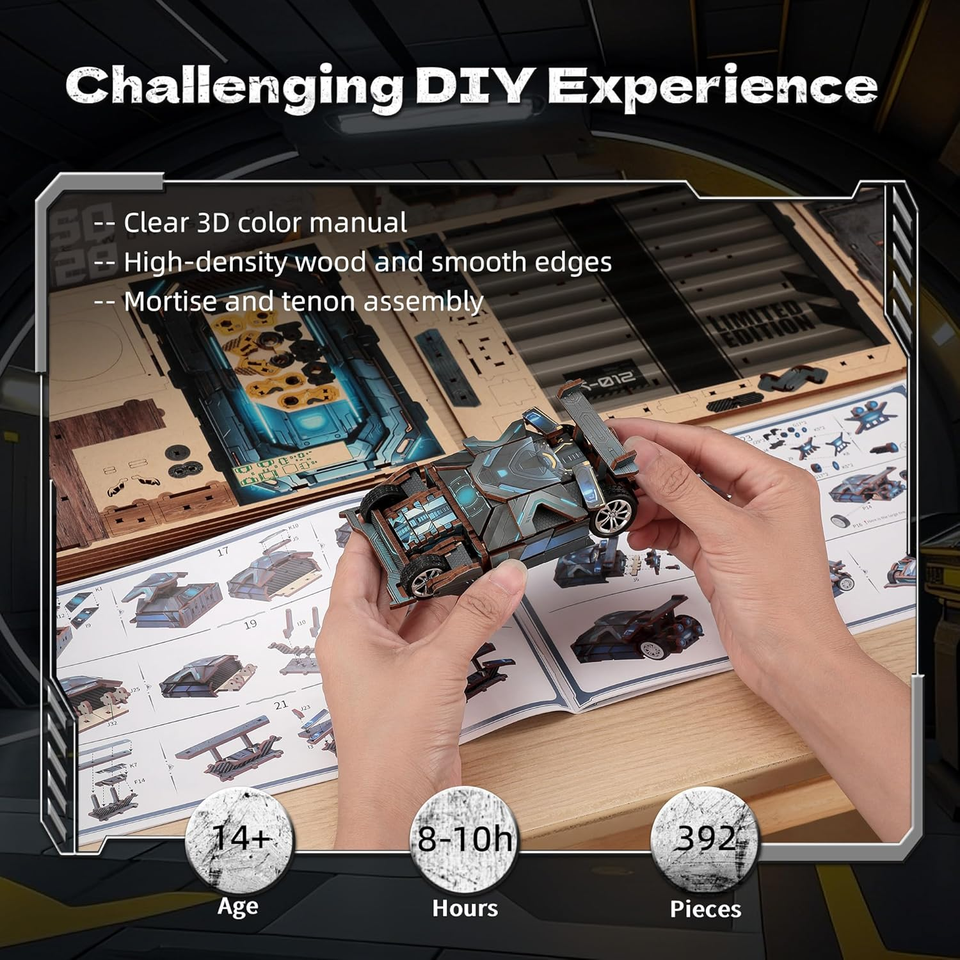 Step into the world of classic car mechanics with this 3D Wooden Puzzle Book Nook ? Automobile Workshop. Designed with layered industrial styling, realistic tools, and warm LED lighting, this DIY miniature brings a nostalgic garage scene to life right on your bookshelf.