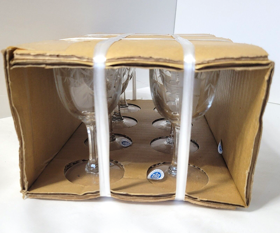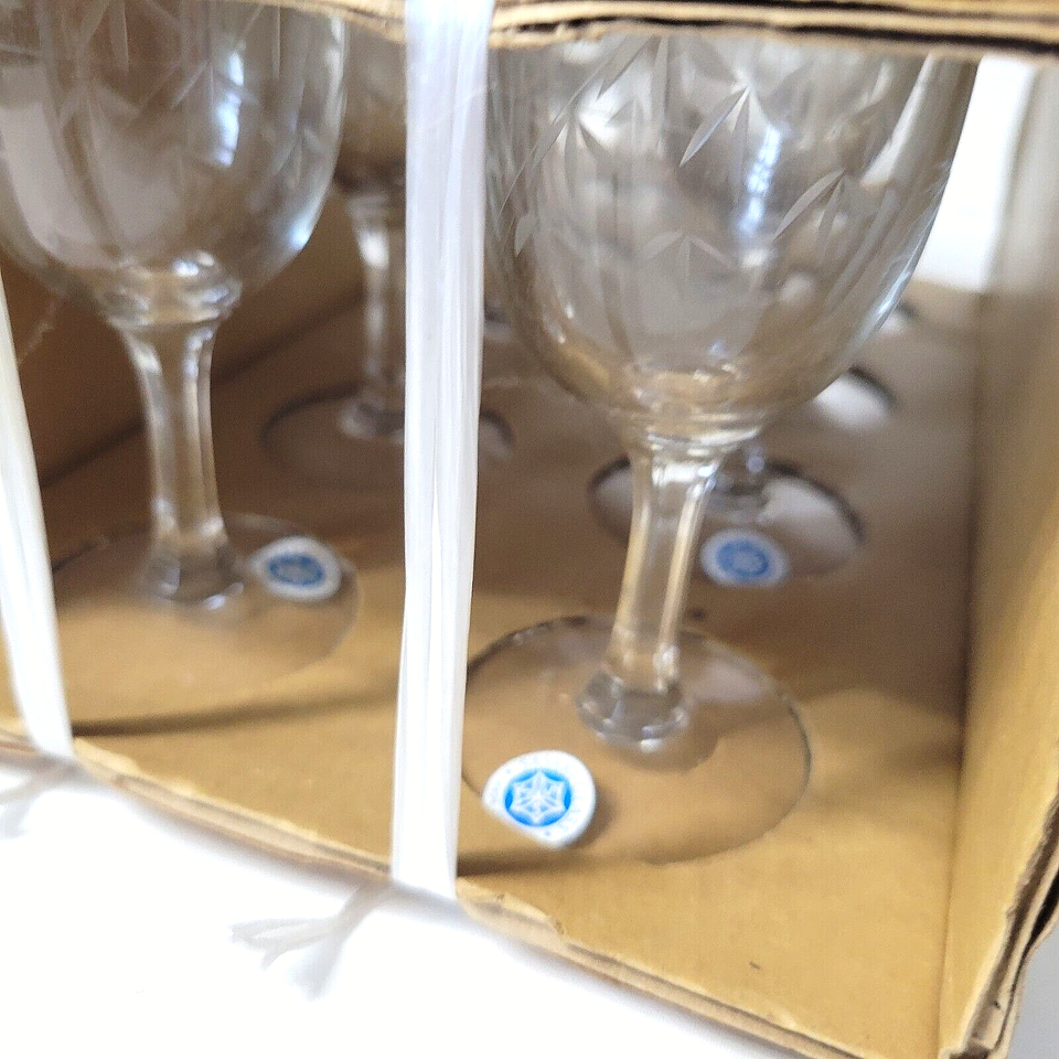 8 Vtg MCM Sasaki Glass Etched Bamboo Wine Glasses 4-1/4" NEW Noritake
