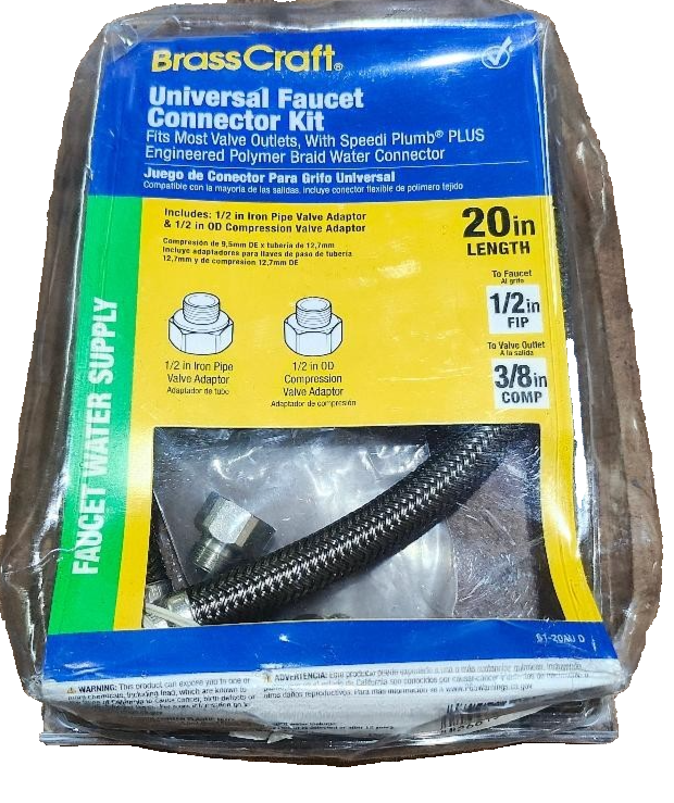 Faucet Supply Line 3/8'' ID Compression x 1/2'' OD x 12'' L, BrassCraft B1-20AUD