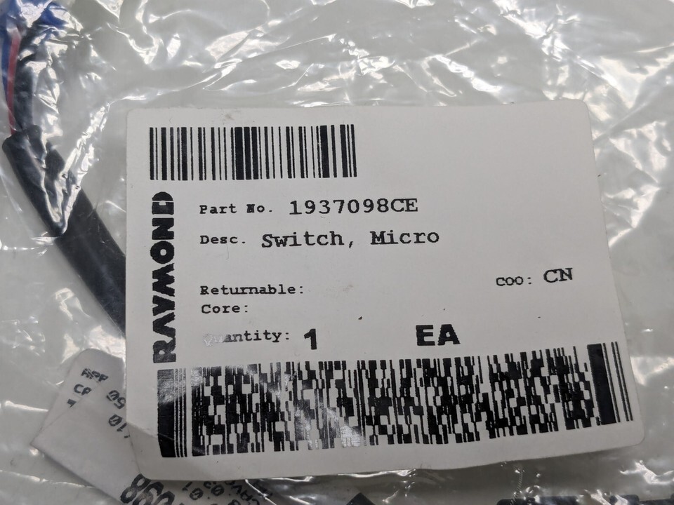NOS RAYMOND MICRO SWITCH & CONNECTOR ASSEMBLY Part# 1937098CE