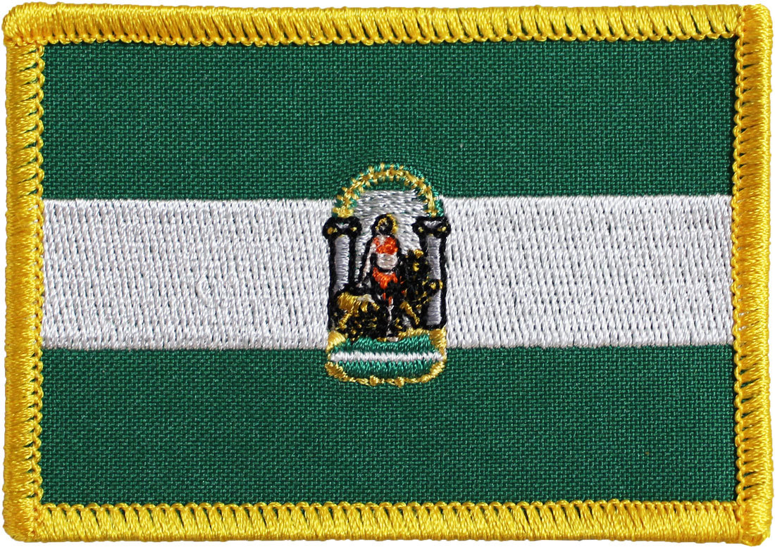 Our rectangular patch features the Andalusia flag with a gold embroidered border. The patch can be sewn on or ironed on. Actual size is approximately 2.25" x 3.25".