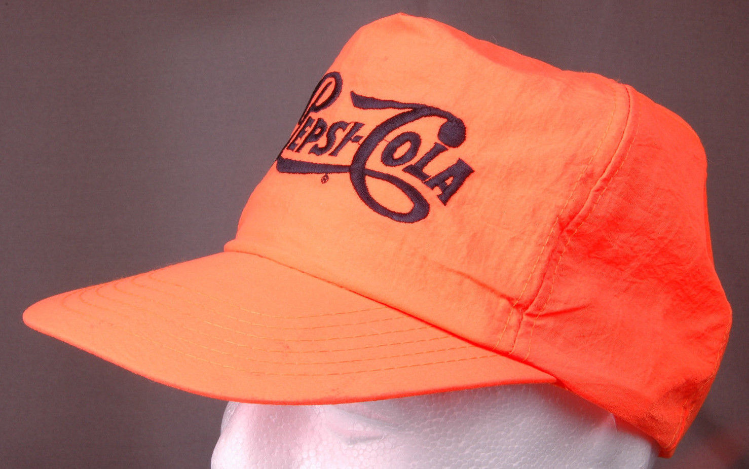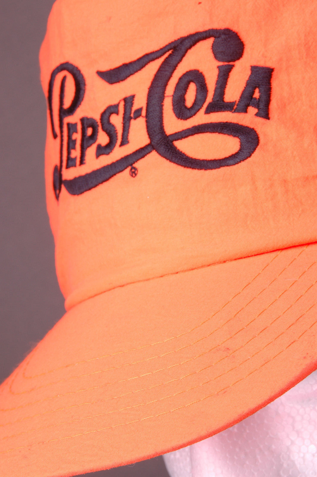Vintage Pepsi Cola Hat-Neon Orange-Embroidered Logo-Trucker Hipster Funky Bright