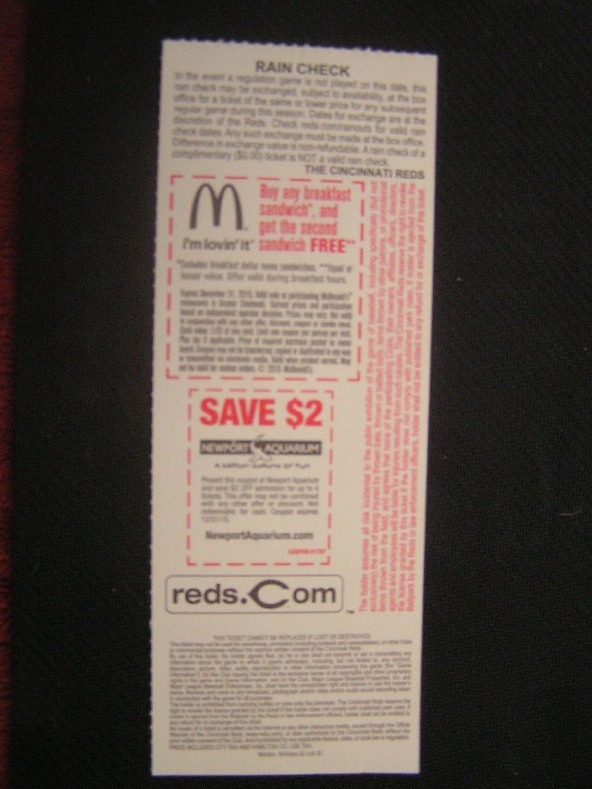 MLB 2015 Cincinnati Reds Full Unused Ticket Stub