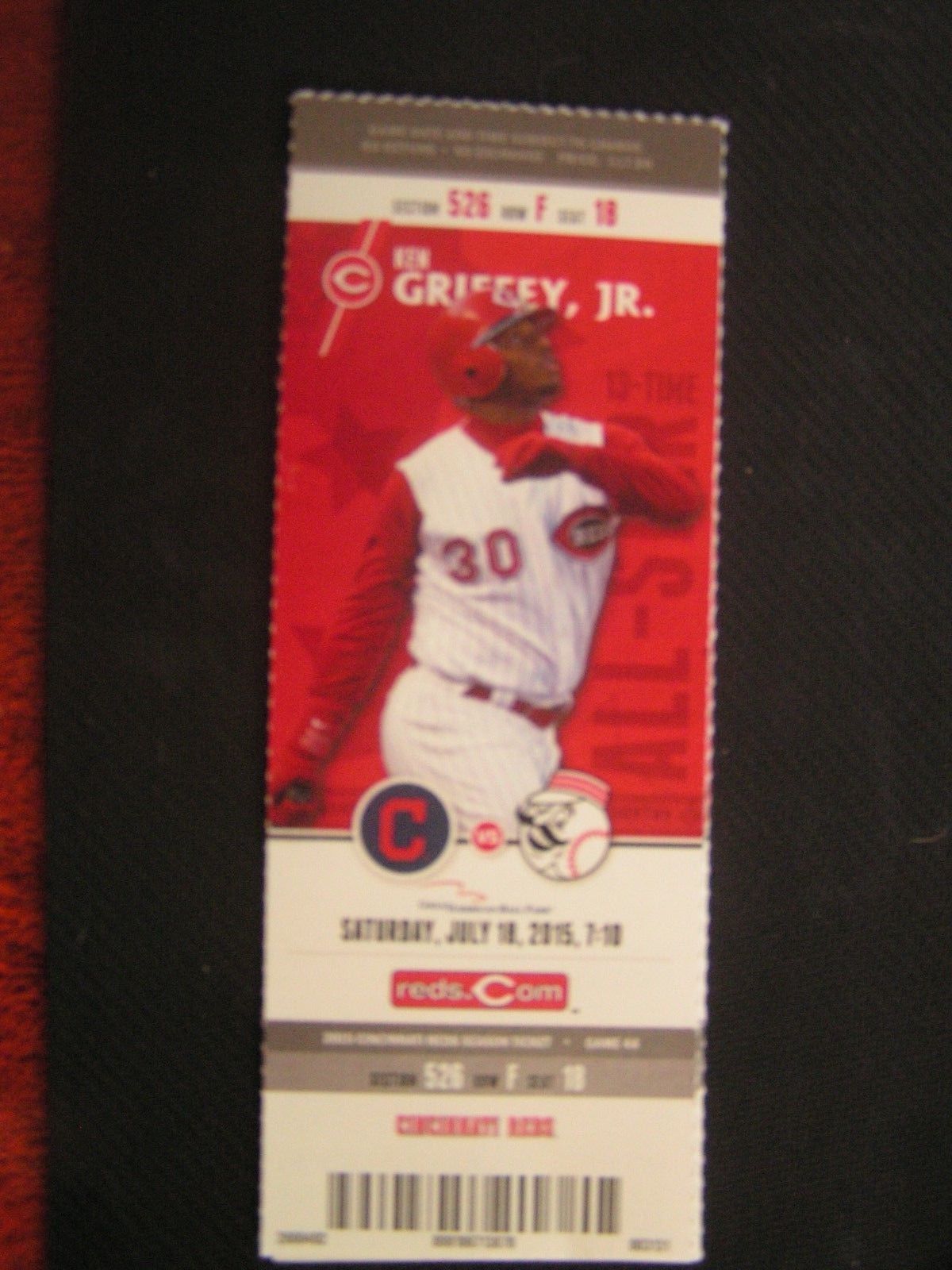 MLB 2015 Cincinnati Reds Full Unused Ticket Stub Vs Cleveland 7/18/15