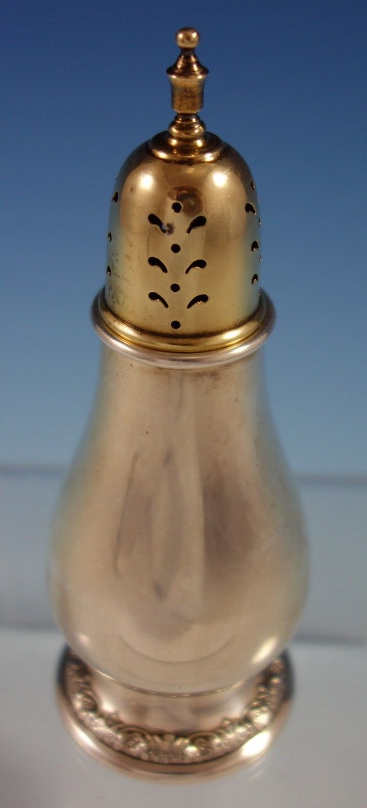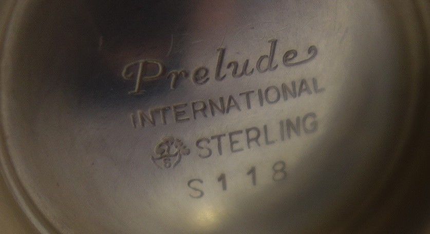 Gorgeous Prelude by International sterling silver salt and pepper shaker pair marked #S118. The shakers measure 5" tall and weigh 4.10 troy ounces. (The salt shaker has a gold washed top). The pieces are not monogrammed and are in excellent condition. Beautiful!
