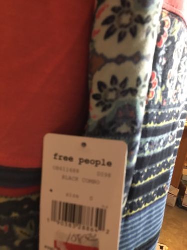 Free People authentic size XS MRSP $128: black combo, boatneck,can wear as a tunic or dress, 3/4 sleeve, NWT