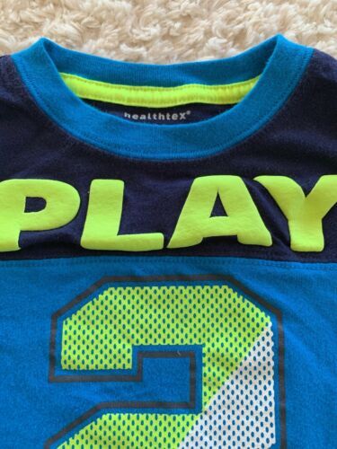 Healthtex Boys Blue Lime Green White Play 2 Win Long Sleeve Shirt 2T. Condition is Pre-owned. Shipped with USPS First Class Package.