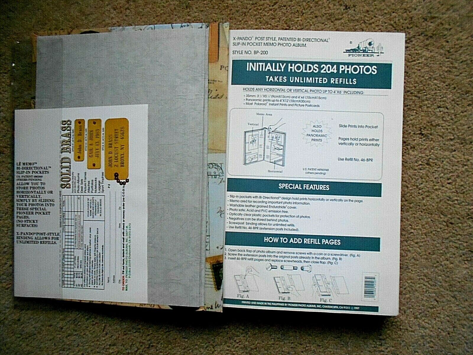 Pioneer LeMemo Refillable Bi-Directional 4"x6" Pocket Photo Album holds 200 photos - Style #BP-200