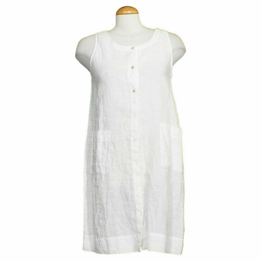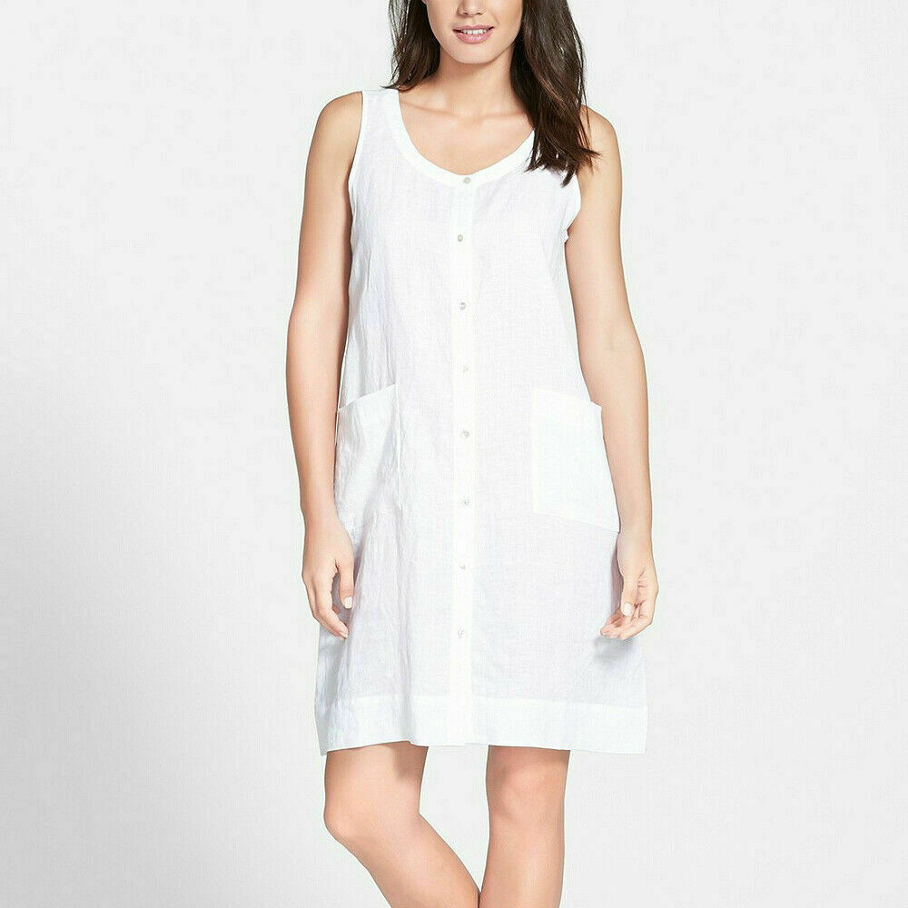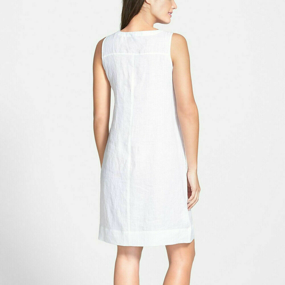 EILEEN FISHER White Handkerchief Linen Sleeveless Button Front Dress XXS