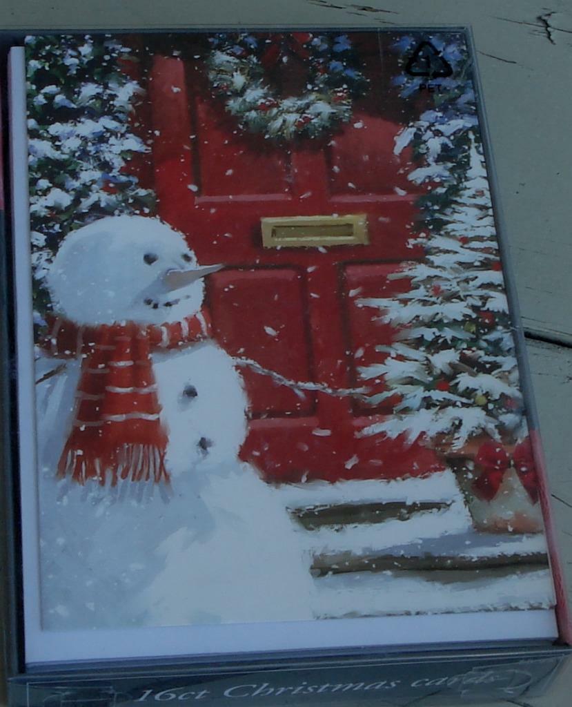 Trim A Home Christmas Cards with Envelopes - Snowman Door - 16 count - Brand New