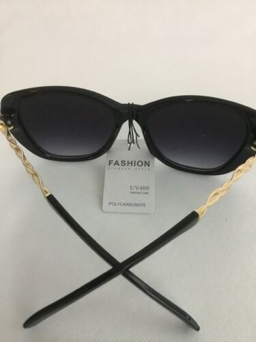 Women’s UV400 Protection Fashion Sunglasses Shades Eyewear Black Gold Tone. Condition is New with tags. Shipped with USPS First Class.