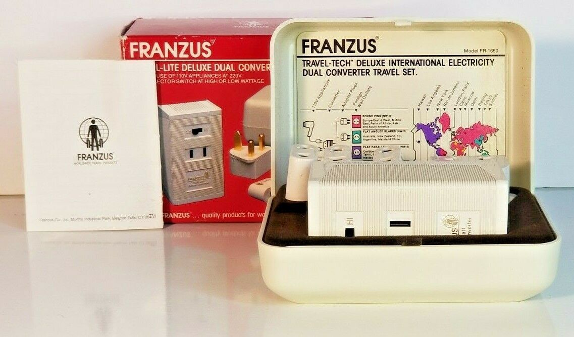 VTG. FRANZUS Foreign Electricity Converter Kit 220V to 110V Travel Case