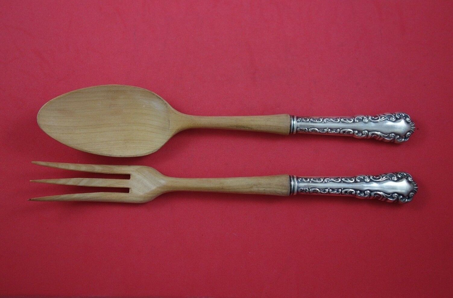 Louis XV by Roden Canadian Sterling Silver Salad Serving Set 2pc with Wood 10"