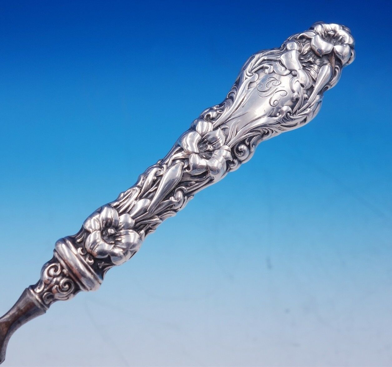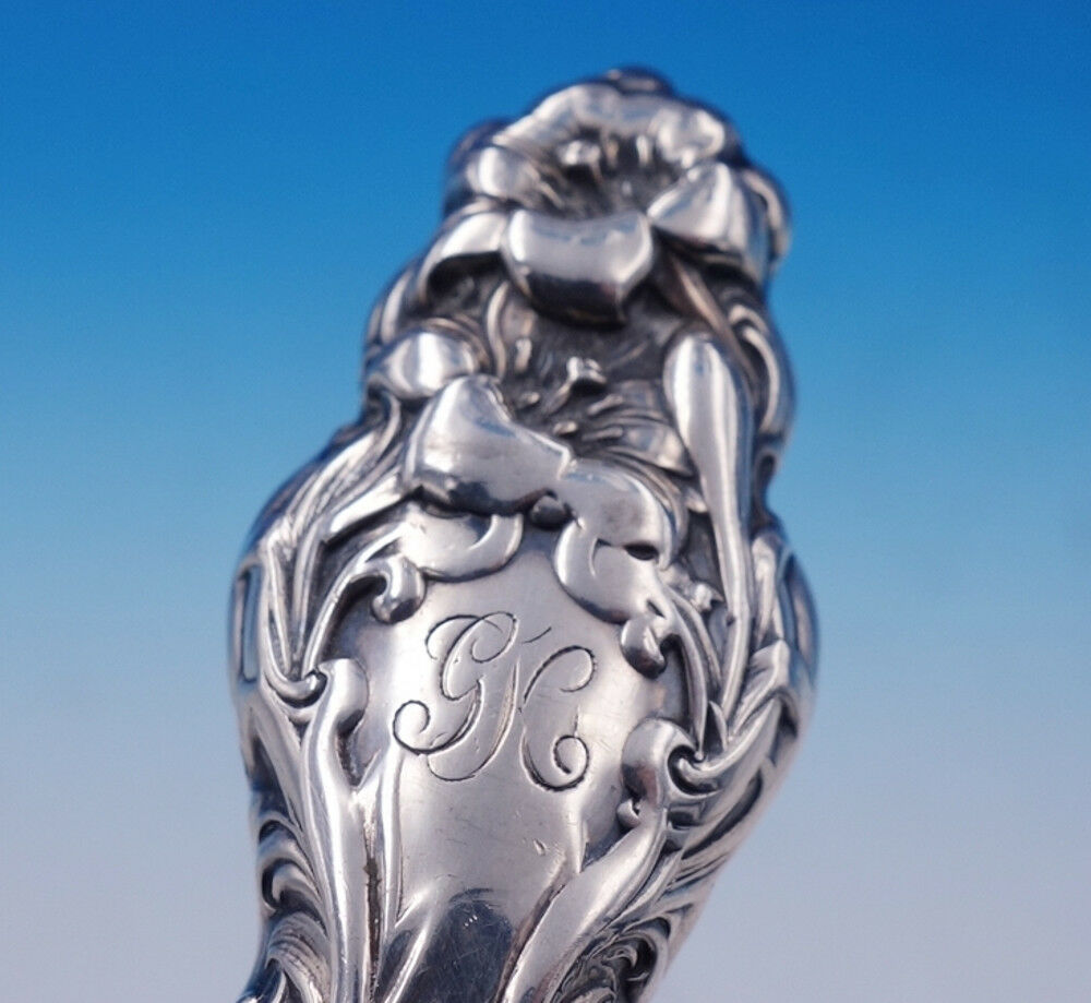 Pretty Lily by Whiting sterling silver nail file with original steel blade. This piece measures 6 1/2" long and is monogrammed (see photos). The hollow handle is in excellent condition, with the file in good estate vintage condition from use with age as shown in the photos . Lovely!