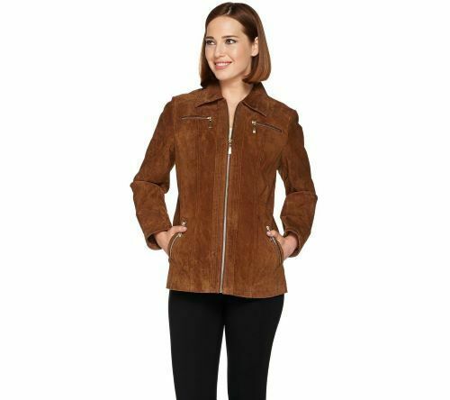 Dennis Basso Washable Leather Suede Zip Front Jacket in Brown Size Lg NWT w flaw