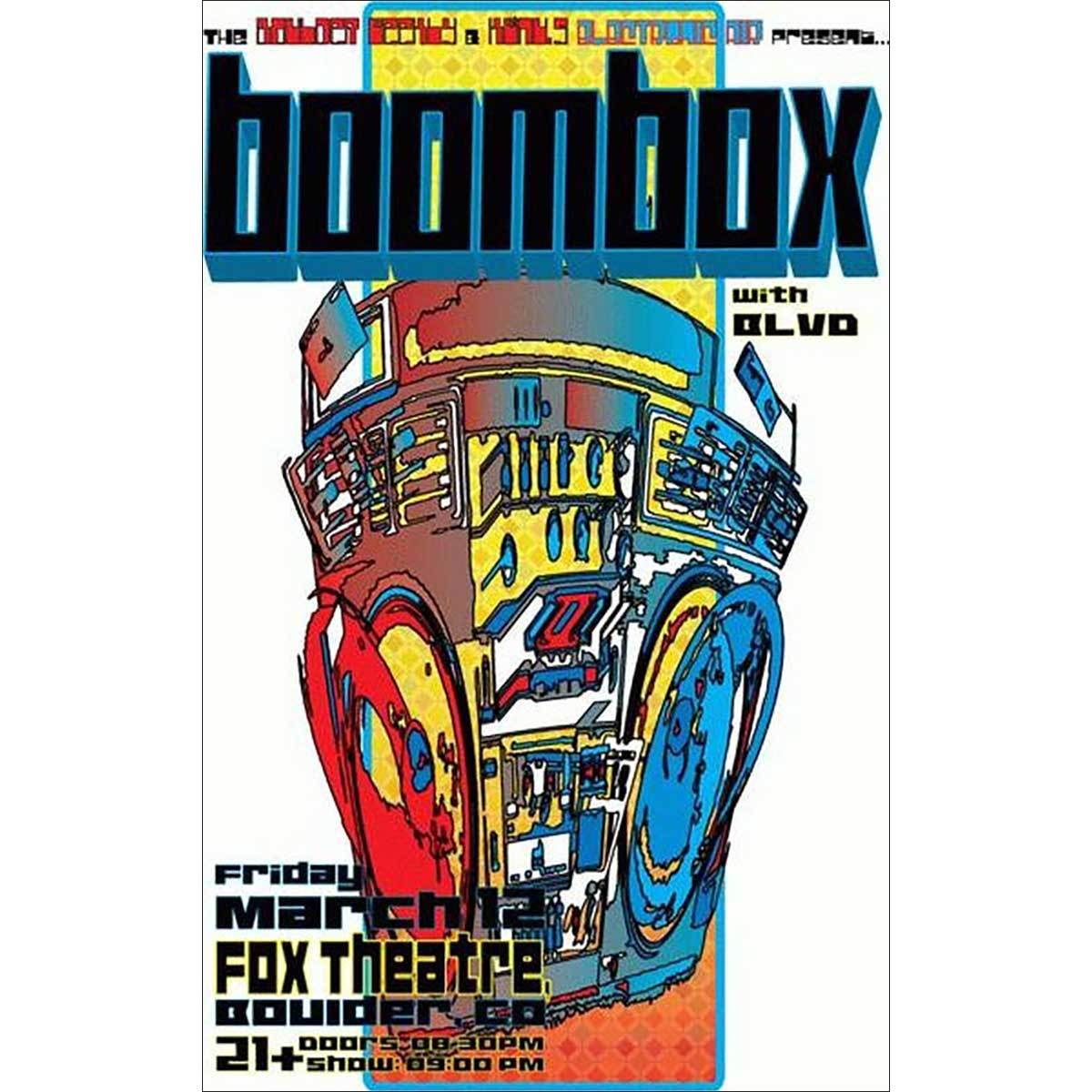 11x17 Concert poster for Boombox at The Fox Theatre in Boulder, CO in 2010. Artwork by Mark Serlo.
